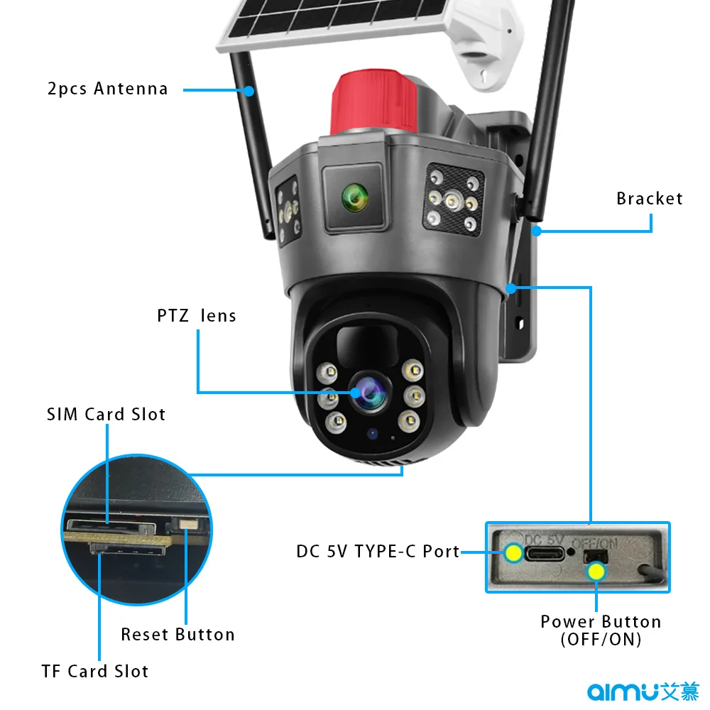 NIGHT VISION, motion detection, Waterproof / Weatherproof, Built-in Siren, PAN-TILT, Two-way Audio, PIR + Radar dual induction detection